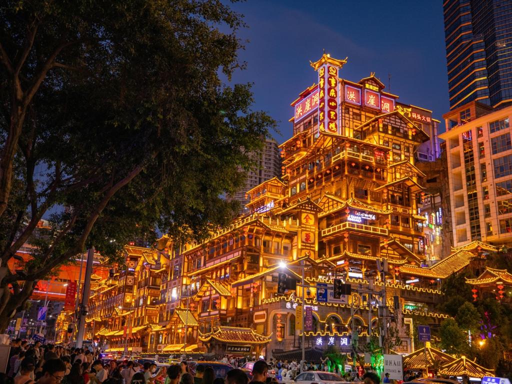 Por la noche, salida para disfrutar de una visita nocturna y contemplar el impresionante skyline de Chongqing, con especial atención a la zona de Hongyadong y el Puente Qiansimen, donde la ciudad se ilumina creando un ambiente único. Regreso al hotel y alojamiento.
