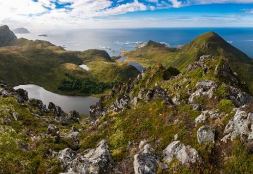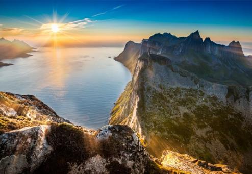 Dejaremos la isla de Andøya para ir hacia el sur y ascender a las montañas cercanas de Stokmarknes y ahí tener una vista privilegiada del archipiélago de las islas Lofoten. Podremos observar el perfil de las montañas y divisar los picos más altos de las islas como el monte Møysalen.