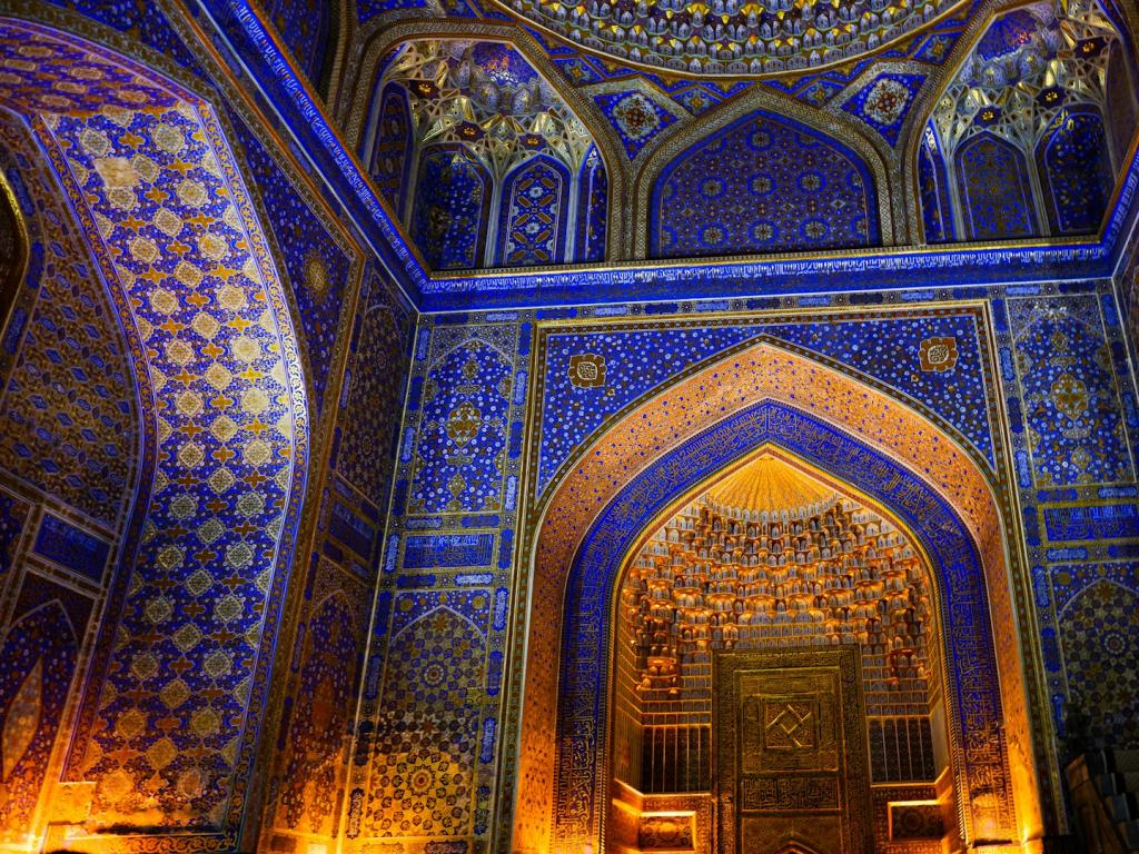 Por la tarde, comenzaremos la visita por esta ciudad legendaria, donde conoceremos el mausoleo Guri Emir, la tumba de Tamerlán. Visitaremos además la Plaza Registán, donde se encuentran numerosos monumentos, como la Madrasa Ulughbek, la Madrasa Shir-Dor y la Madrasa Tilla-Kori, y descubriremos el impresionante complejo arquitectónico de Shakhi – Zinda.