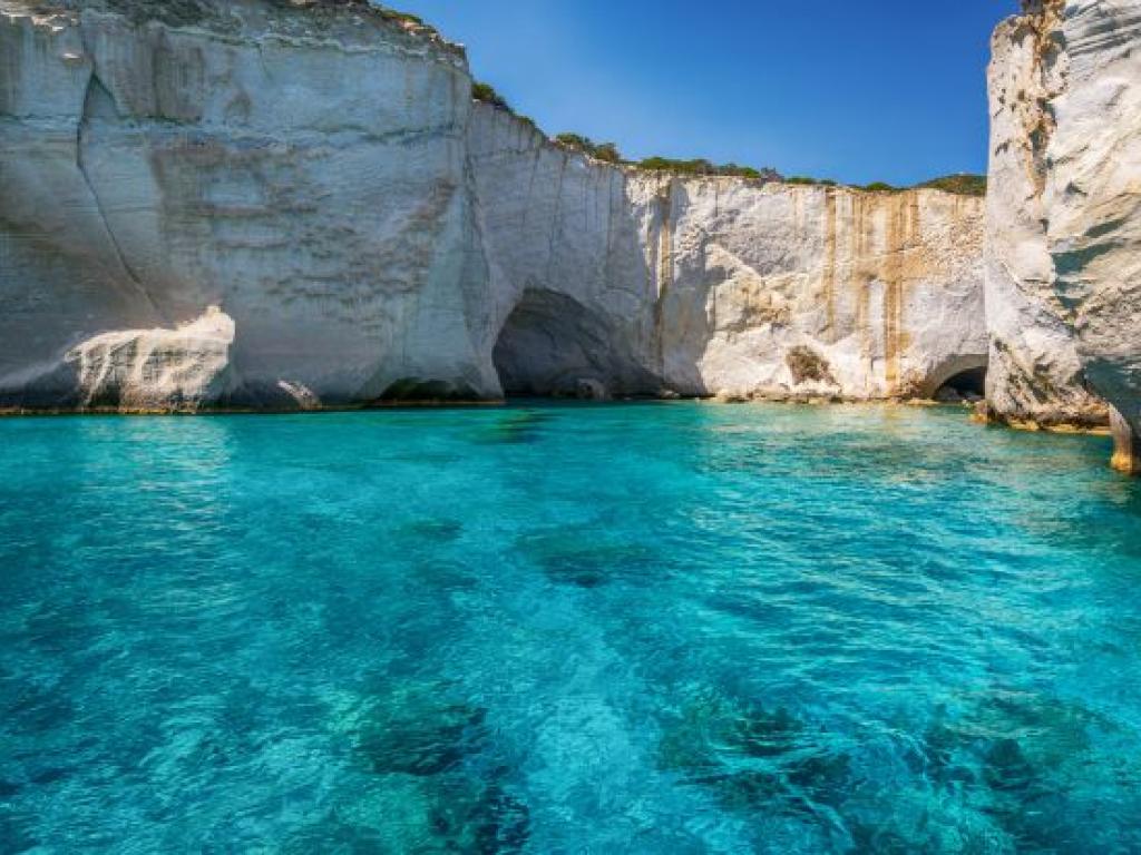 El destino estrella de la costa sur es Kleftiko, que con sus características rocas esculpidas por el viento y sus aguas cristalinas, forman la perfecta estampa de postal de esta isla donde se descubrió la Venus de Milo. La encontró un campesino local en el siglo XIX, no muy lejos del antiguo teatro y de las catacumbas de la capital de la isla, Plaka.