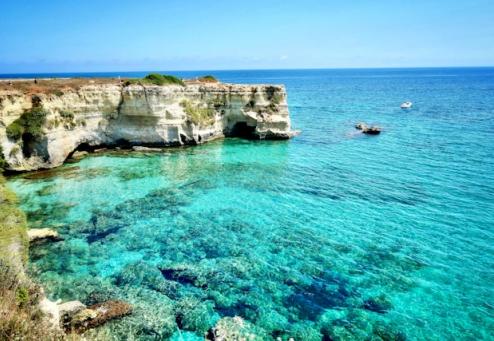 Por la mañana saldremos en barco de Torre Vado para disfrutar durante unas 3hrs del mar y de las cuevas del mar Jónico y Adriático. Mientras sentimos la brisa del mar y nos maravillamos con el paisaje, disfrutaremos de un aperitivo de productos típicos de la región a bordo.