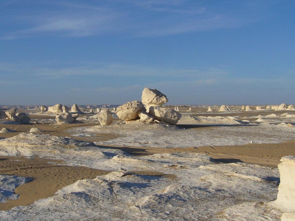 El recorrido continúa hasta el Parque Nacional del Desierto Blanco (aprox. 150 km), uno de los lugares más fascinantes de Egipto. Este desierto, único en el mundo, deslumbra con sus increíbles formaciones de piedra caliza esculpidas por el viento, que evocan la forma de hongos gigantes y figuras fantásticas.