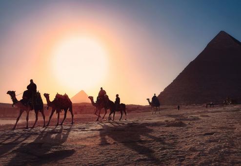 Con la explicación del guía, una vista panorámica sobre las pirámides y la posiblidad que montar el camello.
