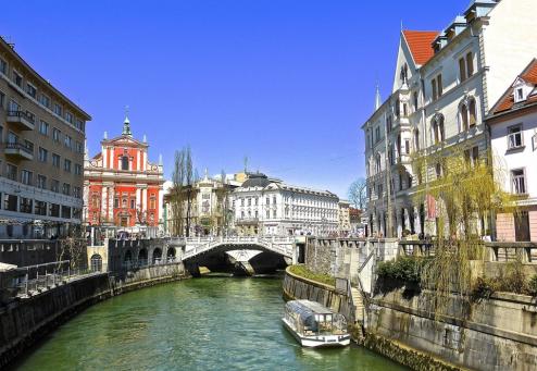 El centro de la capital de Eslovenia destaca por la elegante arquitectura de Joze Pleznik, al estilo del Art Nouveau vienés. Por la tarde puedes pasear por el encantador casco viejo de la ciudad, muy animado, y a los pies de un imponente castillo, con plazoletas, terrazas para tomar algo, tiendas, etc. A una hora prudencial sal hacia la zona de Postojna donde pasarás la noche en la Granja Na Meji. 60 Km.