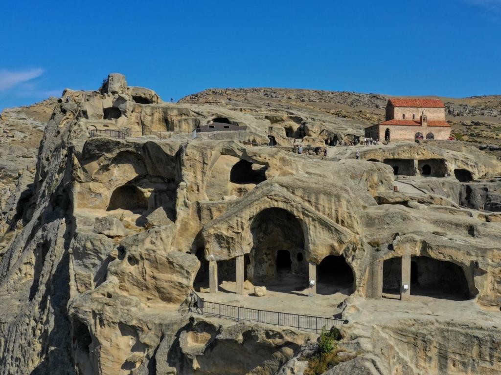 Empezamos nuestra ruta hacia la fascinante ciudad antigua de cuevas de Uplistsikhe, que data del primer siglo después de Cristo. Sin embargo, según afirman los arqueólogos, la historia de Uplistsikhe se remonta incluso al tercer milenio antes de Cristo. Uplistsikhe, traducido como la Fortaleza del Señor, es una impresionante joya arqueológica tallada en la suave roca del desfiladero del río Kura en Georgia. Esta singular ciudad rocosa es un testimonio vivo de la antigua cultura georgiana.