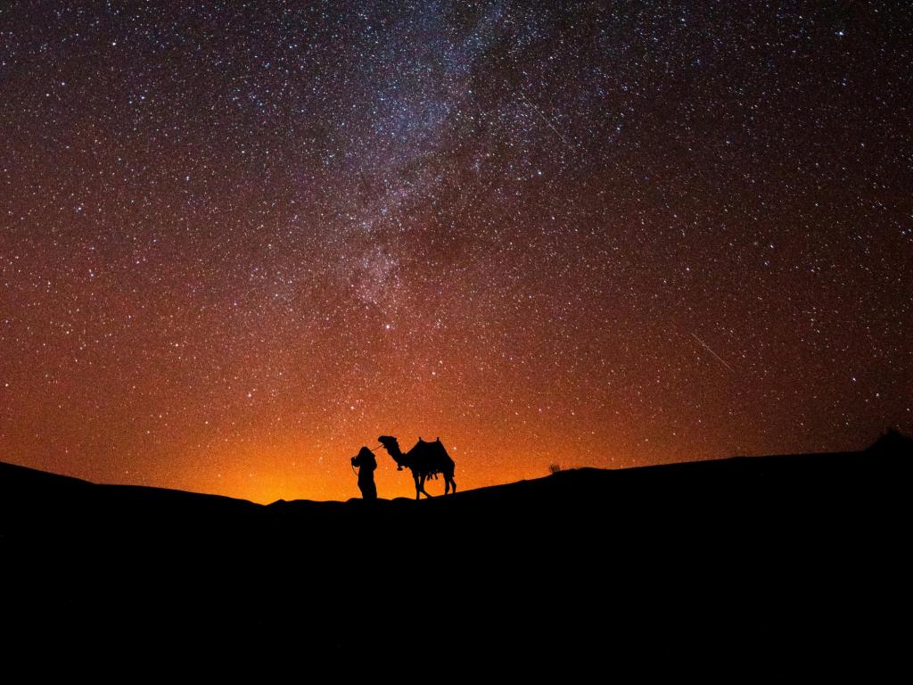 La ruta nos conducirá hasta el majestuoso desierto de Merzouga, donde viviremos la inolvidable experiencia de dormir en una jaima bajo un cielo estrellado que parece no tener fin. Más al sur, nos adentraremos rumbo a Zagoura, atravesando oasis, kasbahs y pueblos bereberes que revelan la riqueza cultural de la región. Finalizaremos nuestro viaje a Marruecos en la encantadora ciudad de Agadir, bañada por el Atlántico.