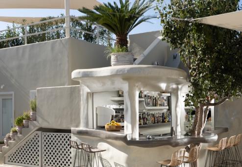 restaurantes. Alojamiento en Santorini.