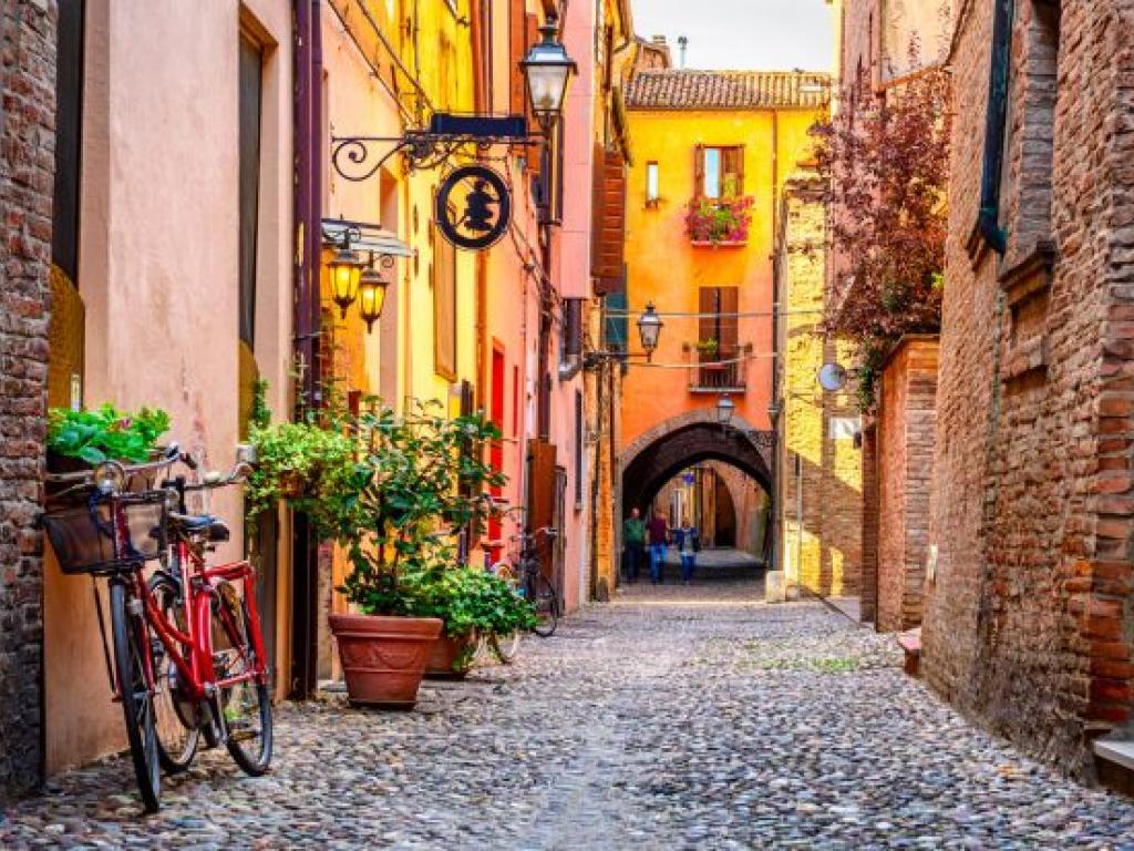 Ferrera es una ciudad reconocida por su bien conservado centro histórico que refleja su esplendor durante el Renacimiento. Sus amplias avenidas, sus murallas intactas y su imponente Castillo Estense, rodeado por un foso, nos transportan a una época de arte, cultura y poder.