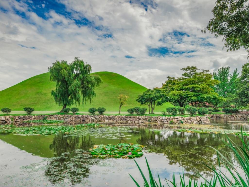 Recorrido con la visita al Parque de los Túmulos Reales de Daereungwon, donde se encuentran los majestuosos túmulos funerarios de los reyes y nobles de Silla. Entre ellos destaca la Tumba del Caballo Celestial (Cheonmachong), descubierta en 1973 y célebre por los tesoros hallados en su interior. La siguiente parada es el Museo Nacional de Gyeongju, que alberga piezas arqueológicas y obras maestras del arte budista, incluyendo la famosa campana de Emille. Después, visita al Observatorio Cheomseongdae, el observatorio astronómico más antiguo de Asia, construido en el siglo VII y testimonio de los avances científicos del reino de Silla.