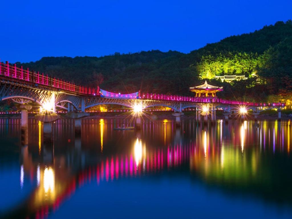 El día sigue con un paseo por el Mercado Antiguo de Andong, donde se puede disfrutar del ambiente local y descubrir productos típicos de la zona, y por el Puente Wolyeonggyo, un elegante puente de madera que se ilumina al caer la tarde y se ha convertido en uno de los símbolos más románticos de la ciudad.