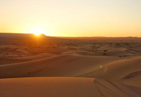 Después del desayuno, saldremos dirección al palmeral de Skoura, pasando por el Valle del Dades, visitaremos las Gargantas del Todra y de allí, a las doradas dunas del Erg Chebbi, donde antes del atardecer comenzaremos la excursión ¡Una auténtica aventura! cambiaremos nuestro transporte por los 8×8 (son los dromedarios) que nos llevarán al corazón del desierto. Realizaremos una parada para ver la puesta de sol, a la llegada, nos espera un excelente y reparador té, una exquisita cena bereber y todo ello amenizado con la música de los tam-tam (tambores). Vais a disfrutar de una noche única e inolvidable, gracias a la gran cantidad de estrellas que pueblan las noches del desierto. Dormiremos en haima bereber. Los niños pueden subir en el dromedario con los adultos, es muy chulo y llamativo para ellos no hay ningún tipo de peligro y dormir en Haimas es una experiencia única.