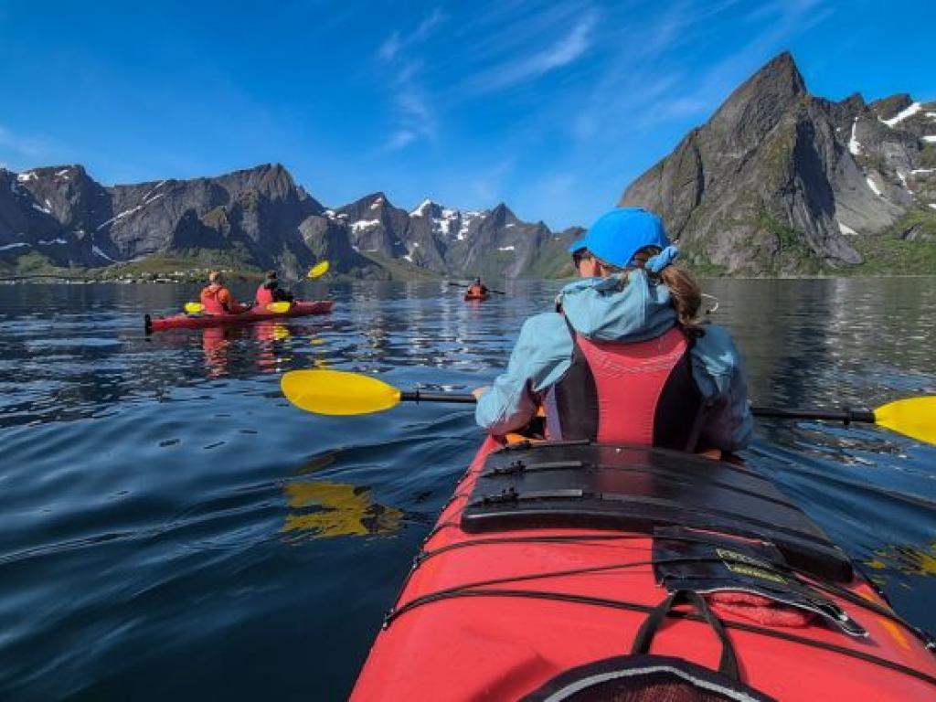 Para quienes deseen una experiencia más activa, tendremos la posibilidad de realizar la siguiente excursión opcional proporcionada por el mismo hotel: excursión de 2 horas en kayak (apta para todo el mundo), sin necesidad de experiencia previa. Una forma única de descubrir la costa de las Lofoten desde el agua, deslizándonos entre pequeñas islas y disfrutando del silencio y la pureza del paisaje.